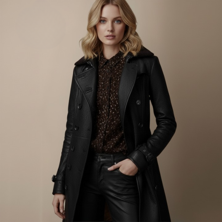 Clavena verbindet stilvolle Klarheit mit einer sanft strukturierten, edlen Optik, die jedem Winterlook eine besondere Note verleiht. Der lange Schnitt schafft eine harmonische, feminine Silhouette, während der markante Kragen dem Mantel eine elegante Ausstrahlung gibt und zugleich ein angenehm geschütztes Tragegefühl vermittelt. Durch sein zeitloses Design eignet sich Clavena sowohl für formelle Outfits als auch für entspannte Alltagskombinationen – ein vielseitiger Begleiter für die kältere Jahreszeit.